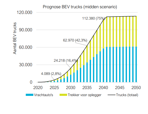 De recent verschenen Outlook ‘Bedrijventerreinen in beweging’ brengt de toekomstige laadbehoefte, tot en met 2050, in kaart van elektrische trucks en bestelauto’s op bedrijventerreinen. Nederland beschikt over ongeveer 3.700 bedrijventerreinen. Door de toenemende elektrificatie van de vervoersector worden bedrijventerreinen een belangrijk concentratiepunt van logistiek opladen. Volgens de onderzoekers zal 85 procent van de elektriciteitsvraag van elektrische trucks en bestelauto’s op bedrijventerreinen moeten worden voldaan. Door de concentratie van het laden op hoge vermogens in bepaalde gebieden zal het onderliggende stroomnet hierop voorbereid moeten worden.