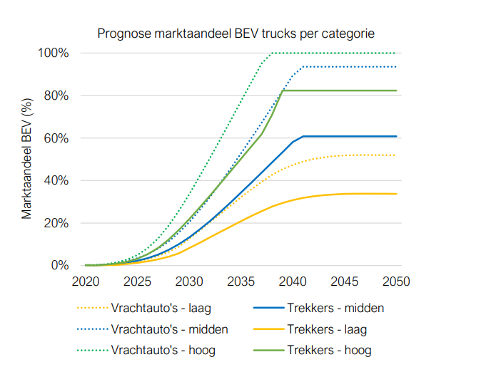 De recent verschenen Outlook ‘Bedrijventerreinen in beweging’ brengt de toekomstige laadbehoefte, tot en met 2050, in kaart van elektrische trucks en bestelauto’s op bedrijventerreinen. Nederland beschikt over ongeveer 3.700 bedrijventerreinen. Door de toenemende elektrificatie van de vervoersector worden bedrijventerreinen een belangrijk concentratiepunt van logistiek opladen. Volgens de onderzoekers zal 85 procent van de elektriciteitsvraag van elektrische trucks en bestelauto’s op bedrijventerreinen moeten worden voldaan. Door de concentratie van het laden op hoge vermogens in bepaalde gebieden zal het onderliggende stroomnet hierop voorbereid moeten worden.
