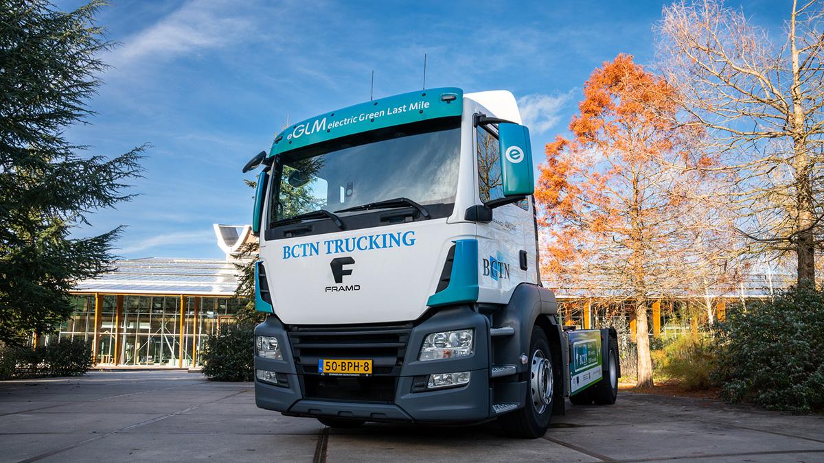 Binnen het eGLM-project is getest met uiteindelijk vier elektrische 40/44 ton trucks van het Duitse merk Framo. Dit Duitse merk bouwt op basis van MAN-trucks bestaande diesel voertuigen om en voorziet deze vrachtauto’s van een volledig elektrische aandrijflijn. De meerderheid van de afstanden die de deelnemende bedrijven in de regio afleggen vallen binnen 50 kilometer enkele reis. De actieradius van de elektrische truck bedraagt 150 kilometer met een batterijpakket dat beschikt over een netto capaciteit van 345 kWh. Het standaard vermogen ligt op 400 kW, zo’n 540 pk. Het piekvermogen van het accupakket ligt op 475 kW, goed voor 640 pk met een trekkracht van 11.000 Nm.